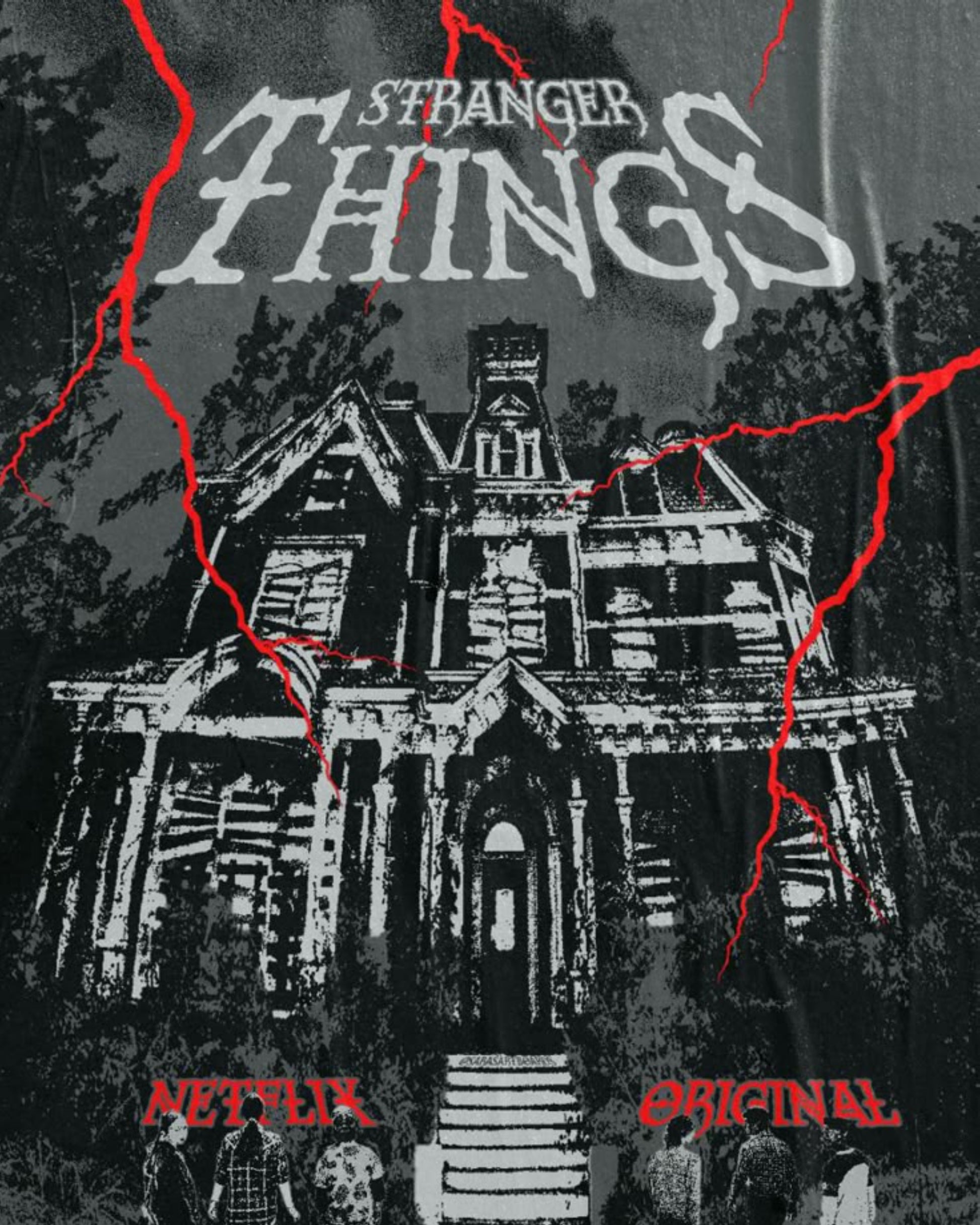 This poster focuses on the haunted Hawkins house, symbolizing fear, secrets, and the Upside Down. A gritty horror-style print made for fans who prefer subtle terror over loud visuals.